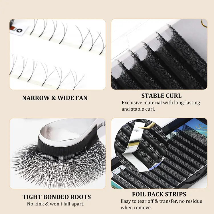 Langlebig und fest: Im Vergleich zu einzelnen Wimpern kann das lange Stammdesign von Wei-förmigen Wimpern vor dem Blühen den Kontaktbereich mit natürlichen Wimpern erhöhen und eine stärkere Haftung und Haltbarkeit bieten.