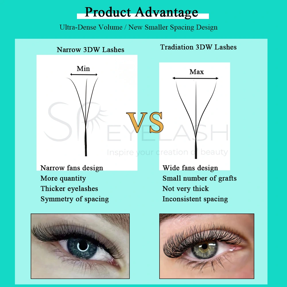 Diese 5D-Klee-Wimpern-Erweiterung mit schmalem Muster bringt Ihnen ein beispielloses Wimpernerlebnis. Im Vergleich zu herkömmlichen Wimpern mit weiten W-förmigen Wimpern verfolgen unsere schmalen 5D-Wimpern eine ultra-limische Lüfterstruktur und ein erweitertes Wimpernbanddesign. Als akribisch mit 5 Wimpern von Hand webiert, schaffen sie eine höhere Dichte, eine tiefere und vollere Wimpernlinie, was sie für Kunden, die einen ultravoluminösen Effekt verfolgen, besonders geeignet sind und gleichzeitig ein natürliches Aussehen bewerten.